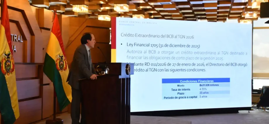 “El crédito se origina de los créditos de corto plazo que se dieron en toda la gestión 2025, se han acumulado todos esos créditos, se los ha consolidado más los intereses y se ha los ha llevado a largo plazo. 35 años con cinco de gracia y tasa de interés 4,55”, detalló el presidente del BCB.
