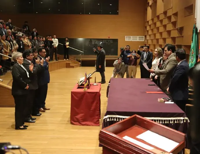 El presidente de la Cámara de Diputados, Roberto Castro Salazar, posesionó este miércoles a los vocales electorales titulares y suplentes departamentales de Oruro y Potosí, con el pedido de que administren las elecciones subnacionales previstas para este año con apego a la ley. “Comparto con ustedes mi preocupación por llevarSeguir leyendo
